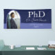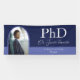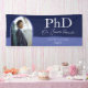 Une bannière qui célèbre un doctorat avec des mots et une photo. Ajoutez votre photo et votre texte, ajoutez-le à votre panier, puis utilisez-le pour célébrer le diplômé ! Diplômé Bleu Arc Script Photo PhD Graduation Bannière Conception de jour férié | ©Melissa Patton - Designer