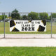 Banderole de félicitations pour la remise des diplômes unique avec casquettes de graduation en noir et or. Modifier le texte pour modifier l'année de classe.