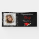Belle bannière pour votre diplômé spécial. Jolis paillettes argentées brillantes avec des éclats d'étoiles. Casquette rouge et diplôme avec ruban rouge. Personnalisez avec votre photo préférée et modifiez le texte.
