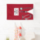 Banderole de la fête de remise des diplômes créative avec gommages rouges et félicitations. Modifiez le texte pour ajouter le nom du médecin et les références médicales.