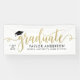 Élégante et glamour bannière de graduation personnalisée signe célèbre votre grade dans le style! Design propose un casquette de grade, "Graduate" dans un faux script de feuille d'or moderne, et un texte personnalisé moderne qui peut être personnalisé avec le nom du diplômé, l'année de classe et l'école.La couleur arrière - plan blanche peut être modifiée.