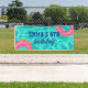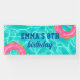Cette bannière de fête d'anniversaire d'inspiration rétro présente de l'eau de piscine bleu vif, des tubes intérieurs de beignes rose doux et une typographie amusante. Ce design est un excellent choix pour toute soirée de billard pour enfants !