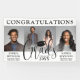 C'est une double fête de graduation ! Ajoutez une touche personnalisée à une célébration conjointe de remise des diplômes en l'honneur de deux diplômés avec un collage photo élégant "Félicitations Grads" bannière. Les photos et le texte de ce modèle sont simples à customiser. Il comprend l'année de classe, les noms des diplômés, et tout autre texte personnalisé, tels que les noms des écoles, les diplômes, les distinctions honorifiques, etc. (CONSEIL EN MATIÈRE DE PLACEMENT D'IMAGE : Une façon simple de positionner une photo exactement comment vous voulez est de la rogner avant de la télécharger sur le site Zazzle.) Le design moderne en noir et blanc présente une calligraphie manuscrite, une typographie classique élégante et trois photos de votre choix, telles que des images de haut niveau ou des images de la cérémonie de début. Ce panneau de remise de diplômes est une façon élégante d'accueillir les invités à une célébration de jour spéciale pour n'importe quel 2 niveaux, comme les frères et soeurs, meilleurs amis, cousins, jumeaux, frère et soeur, etc. Félicitations aux deux diplômés !