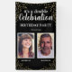 Élégante bannière de fête d'anniversaire conjointe avec un arrière - plan noir élégant qui peut être changé à n'importe quelle couleur, 2 photos, une diffusion de la parties scintillant de confetti or de fête, et un modèle de célébration double moderne qui est facile à personnaliser.