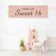 Élégante bannière rose pâle Sweet 16 avec script gris Personnalisée avec le nom de l'invité d'honneur. Choisissez parmi une variété de tailles. Commandez à l'intérieur ou à l'extérieur.