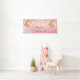 Pour une soirée Sweet 16, 16ème anniversaire. Un arrière - plan rose vif, rose dégradé d'or. Décoré avec des gouttes de parties scintillant imitation, la peinture goutte à goutte, et des ballons. Personnalisez et ajoutez le nom. Idéal à la fois comme bannière de bienvenue ou comme décor de fête.
