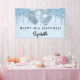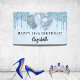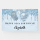 Pour une soirée Sweet 16, 16ème anniversaire. Un arrière - plan bleu bébé. Décoré avec des gouttes de parties scintillant imitation, la peinture goutte à goutte, et des ballons. Personnalisez et ajoutez le nom et l'âge. Idéal à la fois comme bannière de bienvenue ou comme décor de fête.