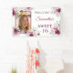 Jolie bannière de bouquet floral rose et bourgogne pour votre fête Sweet Sixteen. Ajoutez votre photo au cadre bourgogne, personnalisez le texte et la police à votre goût. La couleur de fond que j'ai en blanc peut être changée en n'importe quelle couleur de l'arc-en-ciel.