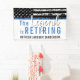 Cette conception comprend un drapeau de la police avec des rayures noires et blanches, ainsi qu'une fine bande bleue. Le texte "La légende prend sa retraite" se trouve au-dessus du nom personnalisable de l'officier, du shérif, du capitaine ou du chef de l'autorité qui prend sa retraite. Célébrez cette étape importante en style!
