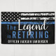 Cette conception comprend un drapeau de la police avec des rayures noires et blanches, ainsi qu'une fine bande bleue. Le texte "La légende prend sa retraite" se trouve au-dessus du nom personnalisable de l'officier, du shérif, du capitaine ou du chef de l'autorité qui prend sa retraite. Célébrez cette étape importante en style!