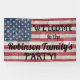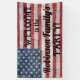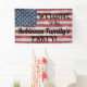 Drapeau Patriotic USA vintage, étoiles et rayures rouges, blanches et bleues, sur des carreaux de pierre. Le texte calligraphique est personnalisable.