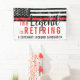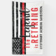 Ce design présente un drapeau de pompiers avec des rayures noires et blanches, ainsi qu'une fine bande rouge. Le texte "La légende prend sa retraite" est situé au-dessus du nom du pompier, lieutenant ou chef qui part à la retraite. Célébrez dans le style avec ce superbe fond de bannière que vous pouvez utiliser comme toile de fond pour des photos !