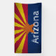 Drapeau d'état de l'Arizona personnalisable...Treize rayons rouges et jaunes sur la moitié supérieure et bleu sur la moitié inférieure, avec une étoile en cuivre au centre. Le drapeau de l'Arizona se compose de 13 rayons de rouge et de jaune soudé sur la moitié supérieure. Le rouge et le jaune symbolisent les conquistadores espagnols qui ont exploré cette partie de l'Amérique ; c'est parce que le drapeau s'inspire du drapeau actuel de l'Espagne. L'étoile centrale est synonyme de production de cuivre ; l'Arizona produit plus de cuivre que n'importe quel autre état américain. Personnalisez avec votre nom.