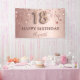 Elégant, classique, glamour et girly pour une fête de 18ème anniversaire. or rose et rose vif, arrière - plan dégradé. Décoré d'or rose et d'étoiles roses. Personnalisez et ajoutez un nom. Avec le texte : Joyeux anniversaire. Le nom est écrit avec un script de style moderne en lettres de couleur rose foncé. Le numéro 18 est écrit avec une police de style ballon. Peut être utilisé comme bannière de bienvenue ou comme décoration murale de fête.