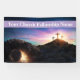 Notre magnifique Tombeau Vide, Trois Croix, Bannière Pâques De L'Église Du Coucher De Soleil Violet. Achetez avec nos produits correspondants dans notre collection Pâques.