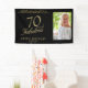 Bannière de Photo de Fête d'Anniversaire Elégante Dorée Noire 70 ans et Fantastique. Texte 70 ans et fabuleux dans un script doré tendance sur fond noir. Personnalisez-le avec votre photo, votre nom et votre âge, et créez votre propre fond de fête d'anniversaire élégant pour la fête d'anniversaire d'une femme.