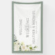 Créez la bannière mariage parfaite avec ce bouquet branché de fleurs blanches comme les roses et les hydrangées jumelé à une végétation botanique magnifique et bordé d'un vert gris doux avec écriture artisanale 'bienvenue au mariage de'. Parfait pour les mariages de jardin et de jardin. Contacter le concepteur pour les produits correspondants. Voir la suite ici : https://www.zazzle.com/collections/elegant_white_gray_green_watercolor_floral_wedding-119579606519645351 Copyright Anastasia Surridge pour Invitations élégants, tous droits réservés.