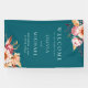 Banderole de bienvenue mariage à thème turquoise aux accents boho chic floral de fleurs dahlia et feuilles botaniques d'automne. Simple à personnaliser avec les détails de votre mariage pour accueillir vos invités dans une élégante typographie minimaliste.