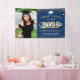 Banderole moderne de graduation avec un arrière - plan bleu élégant qui peut être changé à n'importe quelle couleur, un mortier, parties scintillant d'or cascade, l'année 2023 dans une fausse police de feuille d'or, le nom des diplômés, collège/université, et leur réalisation.