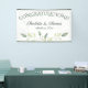 Cette Bannière de Félicitations Mariage Elégante est conçue avec des Feuilles floral Aquarelle doux. Le texte comprend les prénoms de la mariée et de la mariée et la date du Mariage, avec des FÉLICITATIONS en gras! Pour personnaliser, insérez simplement votre texte dans notre modèle facile en remplaçant les noms et la date des exemples. Assurez-vous de voir le Faire-part de mariage et les Accessoires correspondants.Profitez!