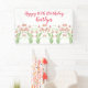 Une bannière élégante pour un 16ème anniversaire spécial avec des groupes de fleurs sauvages roses avec "Joyeux 16ème anniversaire" et un lieu pour un nom dans un script de style manuscrit rose décoratif. Utilisez le modèle fourni pour personnaliser votre texte. Une bannière est une bonne touche, que ce soit dans un lieu extérieur ou une fête virtuelle sur Zoom !