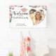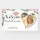 Créez une bannière de bienvenue unique pour la fête de remise des diplômes avec une photo en forme de coeur dans un cadre de couleurs or rose, le dicton Bienvenue à la fête de la graduation décorée de fleurs roses et illustrations casquettes de diplômé sur un arrière - plan blanc. Téléchargez une photo et tapez le nom de votre élève, le nom de l'école, l'année de l'événement en utilisant le modèle avant de commander. Si des ajustements sont nécessaires, veuillez également les faire à l'intérieur de l'outil de conception avant de commander.