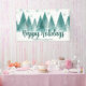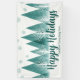 Une élégante rangée de sapins d'hiver et de flocons de neige au-dessus de votre script Happy Holidays personnalisé et de votre nom d'entreprise dans un beau vert turquoise sous la forêt enneigée. Décor de fête d'entreprise moderne avec votre message personnalisé sur une belle bannière d'entreprise festive.
