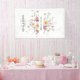 Une bannière de bienvenue aux couleurs pastel douces et délicates, ornée de fleurs d'aquarelle. La typographie élégante et la disposition minimaliste créent une atmosphère sophistiquée et romantique, idéale pour les mariages, les anniversaires et les fêtes spéciales. Entièrement personnalisable avec des noms, des dates et des détails personnels pour accueillir chaleureusement les clients avec une touche chic et charmant.