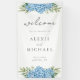 Symbole moderne élégant de bienvenue de mariage avec hydrangea bleu aquarelle design floral.