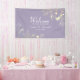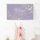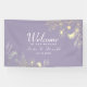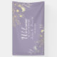 Vintage, élégante, boho lavande violet mariage accueil bannière avec dentelle dorée argentée et dorée fleurie et script de calligraphie moderne.