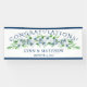 Ajoutez cette Elegant Navy & White Félicitations Accueil Signet / Bannière à votre liste d'accessoires mariages. Conçu avec des grappes de fleurs vives, bleues et blanches, du texte de marine et des bordures de marine, sur un arrière - plan blanc. Pour personnaliser, utilisez notre modèle simple pour insérer vos détails (en remplaçant l'exemple de texte). Accessoires de réception correspondants dans cette collection.