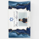 L'élégante agate bleu marine et or orne le côté de cette bannière d'accueil moderne du parti Bar Mitzvah. Le nom de votre fils est écrit dans une belle écriture formelle sous l'Étoile de David. Ajoutez une photo au-dessus de sa date d'anniversaire. Parfait pour une famille juive chic et élégante célébrant un garçon appelé à la Torah.