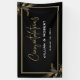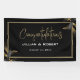 Ajoutez cette élégante bannière accrochée à vos accessoires de réception de mariage. Conçu avec du texte Or et Blanc sur un arrière - plan noir avec des feuilles et des reflets de couleur or. Le texte comprend : Félicitations, Les Noms de l'Épouse et de la Chambre et Date du Mariage. Pour personnaliser, insérez simplement vos détails dans notre modèle facile, en remplaçant l'exemple de texte. Assurez-vous de voir l'ensemble Elegant Black and White, With Gold Mariage Collection pour la papeterie et les accessoires correspondants.