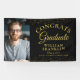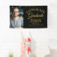 Une bannière de remise de diplômes élégante avec la photo et les détails de votre diplômé dans une typographie chic sur un fond noir et or à paillettes. Conçu par Thisisnotme©