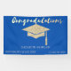 Élégant casquette diplômé en parties scintillant or sur arrière - plan bleu.