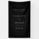 Élégant, police de caractères script "Bienvenue" noir, Bannière de mariage. Personnalisable en quelques minutes. Cette bannière de bienvenue minimaliste convient à de nombreux styles de mariage. Elle s'accorde à toutes les couleurs de votre décoration de mariage et convient à toutes les saisons. Ajoutez vos données et vous pouvez sélectionner la police, la couleur, la taille et la position individuellement en cliquant sur "Personnaliser davantage".