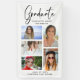 Élégant Script Multi Photo Graduation Graduate Banner comprend cinq de vos photos préférées de votre diplôme d'études supérieures ou secondaires avec le script tourbillonnant moderne de calligraphie noire superposition "Graduate". Décor de fête de remise de diplômes simple, chic et classe. Créé par ©Evco Studio www.zazzle.com/store/evcostudio
