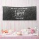Décorez et bienvenue les invités de votre fête d'anniversaire avec cette Elegant Sweet 16 Black Silver Faux Parties scintillant Nom Bannière. Ce design moderne a un arrière - plan noir et des taches d'argent superposées. "Sweet 16" est au centre en blanc et gris écriture écriture de script et "heureux anniversaire" est de l'autre côté du centre. Nom est en blanc minimal lettres sur le centre inférieur.