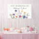 Pretty wildflowers decorate the bottom of this colorful spring wedding banner. Watercolor floral borders are perfect for a garden ceremony outdoors while flowers are in bloom. Elegant script dances above a beautiful orange, purple, yellow, and blue botanical meadow on this custom event decor.