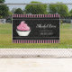 © 2021 Socialite Designs Inc. Élégante bannière en toile de conception de pâtisserie rose pour votre entreprise de boulangerie à utiliser au marché ou au magasin de l'agriculteur.
