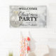 Cette élégante et chic bannière de bienvenue de Noël présente un joli arrière - plan argenté et blanc avec une baule blanche ornée d'un ruban blanc. Personnalisez avec votre nom et le texte de bienvenue spécial.