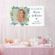 Elégante Hydrangea Photo personnalisée 100th Birthday Party Banner est une belle aquarelle avec hydrangées bleues et verdure. Vous pouvez personnaliser le texte et ajouter une photo.