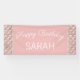 Bannière de fête "Joyeux anniversaire", rose vif et perles élégante et irisée customisée du nom de l'invité d'honneur.