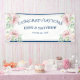 Élégante Bannière de réception de mariage florale aux roses roses blanches conçue avec des fleurs roses douces sur un arrière - plan blanc avec garniture marine. Le texte comprend : FÉLICITATIONS, le nom de la mariée et de la mariée et la date du Mariage. Pour personnaliser, insérez simplement vos détails dans notre modèle facile, en remplaçant l'exemple de texte. Ne manquez pas de visiter la collection de Mariages floraux Elegant Blush Pink Roses pour la papeterie et les accessoires correspondants.
