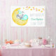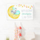 Personnalisez cette jolie bannière de fête d'anniversaire pour votre petit garçon. Le design a une aquarelle illustration d'un bébé éléphant baigné de sa couverture, endormi sur la lune. Le texte dit "heureux anniversaire [nom] [est l'âge aujourd'hui!]" que vous pouvez customiser pour votre enfant. Un design doux et capricieux avec une palette de couleurs turquoise et gris.