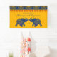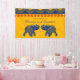 Cette bannière personnalisée offre une vision moderne des cérémonies et réceptions traditionnelles des mariages indiens avec leur palette de couleurs audacieuses de jaune doré, rouge et bleu roi. La bannière est ornée d'un motif géométrique et présente des illustrations d'éléphants en bleu roi et est prête à être personnalisée avec votre propre texte.