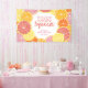 Fruits d'agrumes fantaisistes en citron, roses, coraux, orange et rouge rubis pomelo. Les tranches d'agrumes dessinées à la main comprennent une texture peinte à l'aquarelle pour une touche juteuse à une invitation de Baby Shower de mariage colorée.