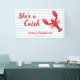 Célébrez votre future mariée avec cette bannière de fête pour enterrement de vie de jeune fille "She's a Catch" (C'est une vraie prise) en forme de homard. Conçue avec une illustration de homard rouge audacieux, des rayures bleu clair et blanc, cette bannière apporte un charme côtier ludique à votre célébration. La police de caractères de style écriture à la main ajoute un aspect amusant et décontracté qui donne une impression personnelle et festive.