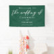 Cette solide bannière de mariage vert émeraude présente un script blanc classique pour un couple se marier dans une forêt ou un autre lieu naturel. Célébrez votre amour avec cette couleur tranquille et coordonnez avec notre collection de typographie minimaliste correspondante.