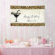 Une bannière d'anniversaire avec un motif élégant. Des taches de léopard noir exotique sur un arrière - plan d'or. Style sauvage mais élégant. Un verre martini en silhouette noire ajoute une touche festive au design. Image de confetti d'or le long du sommet.
